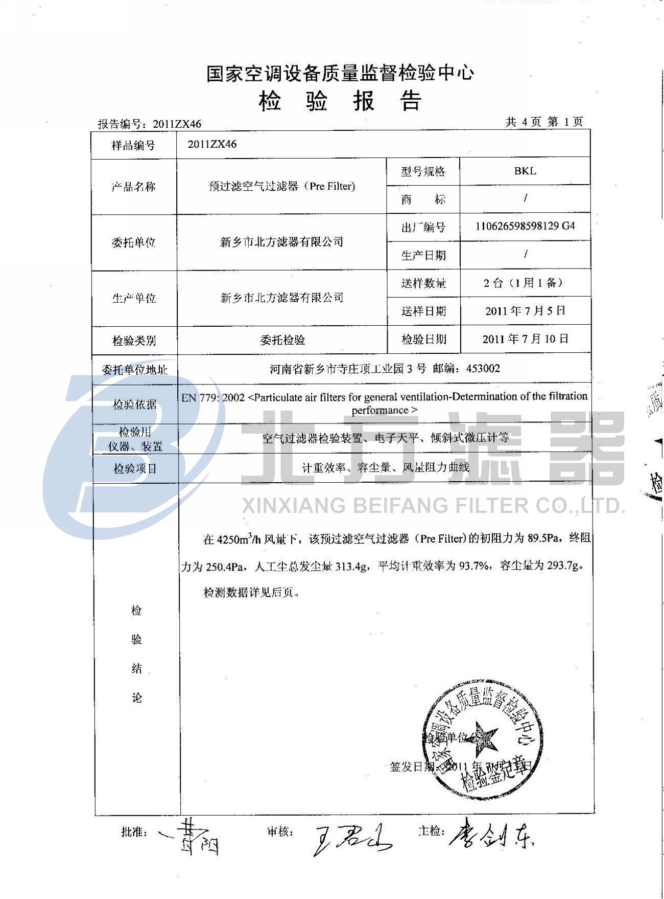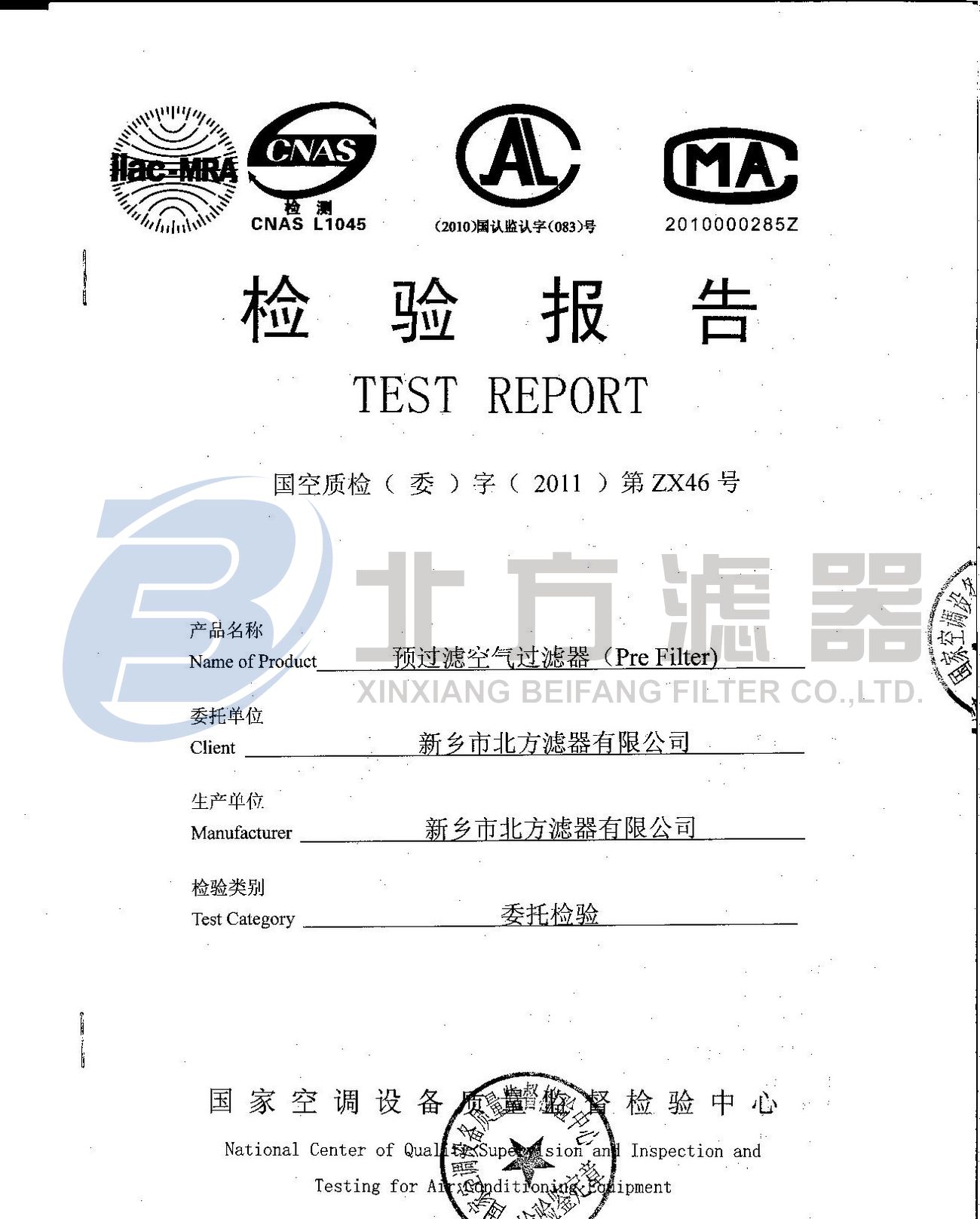 當前位置 : 主頁 > 關于我們 > 榮譽資質(zhì) -預過濾空氣過濾器檢測報告
